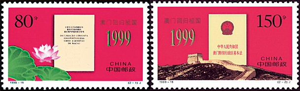 1999年第20届优秀纪念邮票《澳门回归祖国》