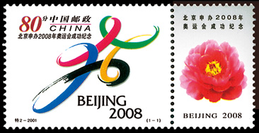 2001年第22届优秀特种&专家奖邮票《北京申办2008年奥运会成功纪念》