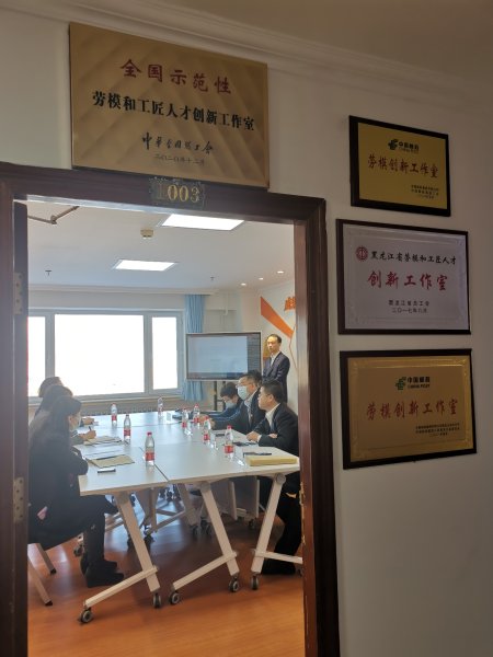 2022年1月11日,黑龙江省总工会高丽光副主席一行到中国邮政集团有限公司黑龙江省分公司,就全省邮政工会工作开展情况进行调研,省分公司党委委员、副总经理、工会主席陈钊陪同调研。