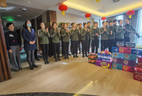 元月25日,恰逢南方“小年”,在这个欢乐的节气里,中国邮政集团有限公司武汉市分公司副总经理王旭带着市分公司党委的亲切嘱托,来到春晚驻地北京洛仕文酒店,向参加2022年中央广播电视总台春节联欢晚会的武汉邮政艺术团演职人员送去企业的温暖与节日的祝福。