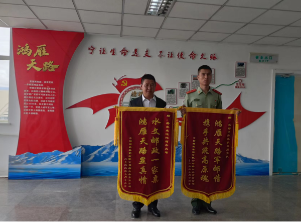 最后,刘炜副总经理代表格尔木市分公司党委为武警青海总队第二支队、青海省水文水资源测报中心送上锦旗,感谢一直以来的大力支持。
