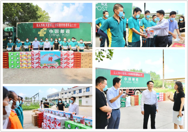 8月4日上午,连云港市人大常委会副主任、市总工会主席王家全来到连云港邮政分公司人民路营业投递部,看望慰问邮政一线员工,将凉茶、绿豆、饮用水、毛巾、花露水等消暑降温的保障物资送到揽投员手中,将工会“娘家人”的关怀和夏日“清凉”送进高温下奋战在一线的员工心里。连云港邮政分公司党委书记、总经理刘艳梅,党委委员、副总经理、工会主席李宝军陪同慰问。