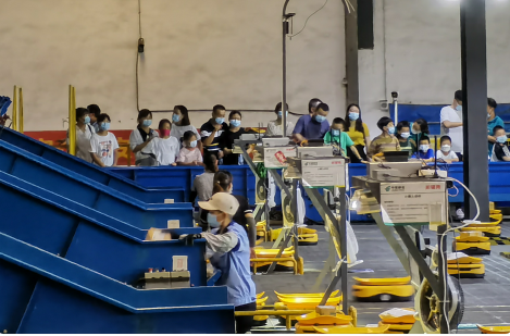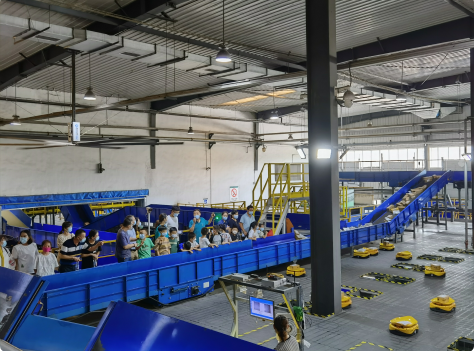 走进生产车间,现代化的生产场景让孩子们新奇兴奋。“小黄人”系统讲解员向大家介绍该系统于2017年11月9日正式上岗,这是全国邮政企业的第一个智能分拣项目,也是安徽省快递行业第一套投入实际应用的智能分拣系统。通过讲解员对“小黄人”的详细介绍以及现场工作场景,孩子们近距离地感受了科技带来的神奇魅力。忙忙碌碌认真工作的小黄人吸引着众人的目光,它们创造的劳动价值也让孩子们感觉很震撼,同时为自己父母的单位拥有这样自动化智能化的生产设备感到骄傲。