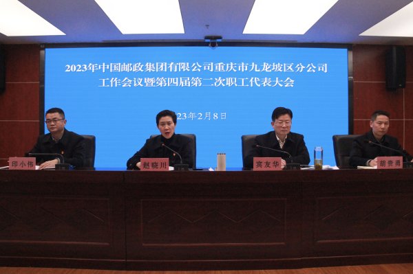 2023年2月8日,九龙坡区分公司组织召开2023年中国邮政集团有限公司重庆市九龙坡区分公司工作会议暨第四届第二次职工代表大会,区分公司领导班子;机关内设部门负责人;各支局(所)营业部负责人、职工代表参加会议。