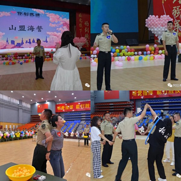 活动现场,欢声洋溢、热闹非凡。军地男女青年通过欢乐有趣的游戏互动,别出心裁的才艺展示,浪漫心动的真情告白等环节,不断增进相互间的了解,拉近彼此间心灵的距离,现场气氛欢快而浪漫,铁血与柔情交相辉映。活动期间,还结伴观看了军史长廊,欣赏了《扎根大漠 砺剑强军》和《苍天般的阿拉善》等宣传短片,进一步加深女青年对部队和官兵的了解,增强对军人职业的认同感,激发军属的荣誉感和自豪感。