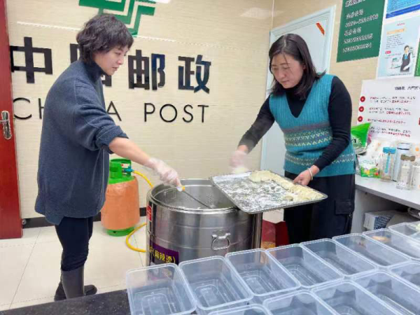 金昌市分公司工会组织员工开展“情暖冬至,水饺飘香”包饺子活动,市、区分公司部室机关人员与食堂人员一起包饺子。大家各显身手,互相交流包饺子经验、畅谈工作和生活趣事,现场气氛温馨热闹。随着蒸汽不断上涌,一盒盒饺子出锅,市分公司组织车辆为7个网点、7个揽投班及邮件处理中心在岗位员送去饺子,员工们吃着香喷喷的水饺,赞不绝口不绝于耳“市分公司想的真周到”“饺子真香啊”,在欢声笑语中品尝着冬至里第一口热乎饺子。