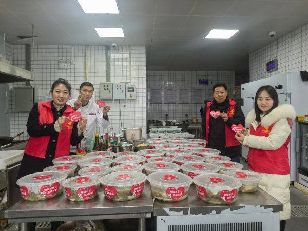为了让员工准时喝上健康美味的羊肉汤,职工食堂提前一天开始熬制羊肉,组织机关相关人员将半成品羊肉、蘸料、葱花、香菜分装打包,长寿邮政领导带队送往各个职工小家。