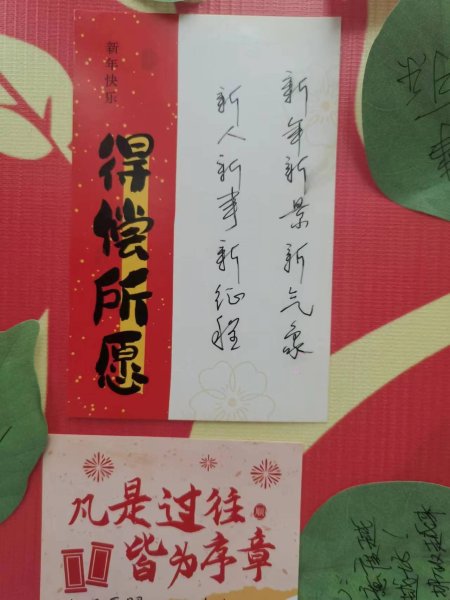 “越努力,越幸运”“努力工作,推动贵州邮政高质量发展”“元气满满,保持热爱”“辞暮尔尔,烟火年年”......祝福墙上,挂满了300多名职工书写的祝福卡,树叶型、菱形、正方形、长方形等各种形状的贺词卡片,五颜六色,逗人喜爱,把祝福墙装扮得郁郁葱葱,象征着来年蓬勃发展。