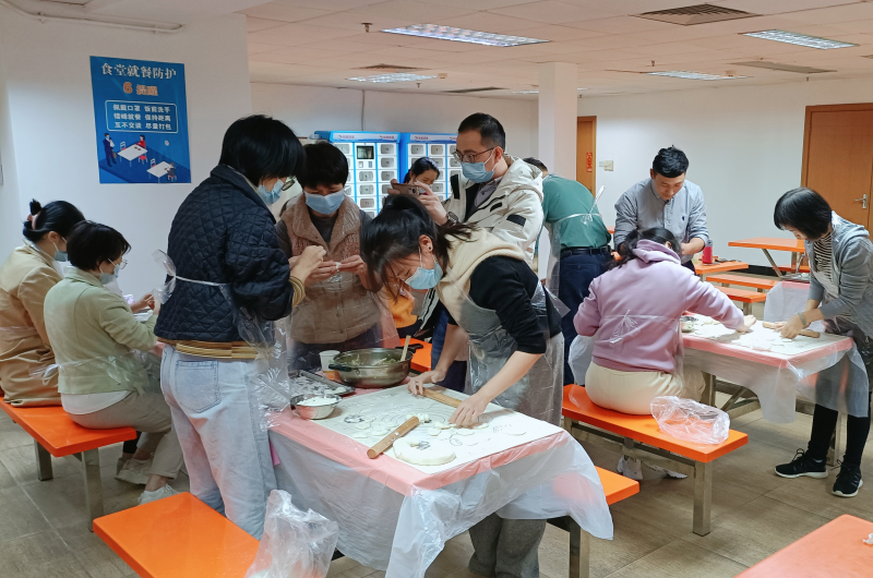 信源集团工会为本次活动设置了团队赛、创意赛两个环节,并在员工饭堂提前准备好了桌布、揉面垫、擀面杖等工具及面团、饺子馅、配菜蘸料等食材。