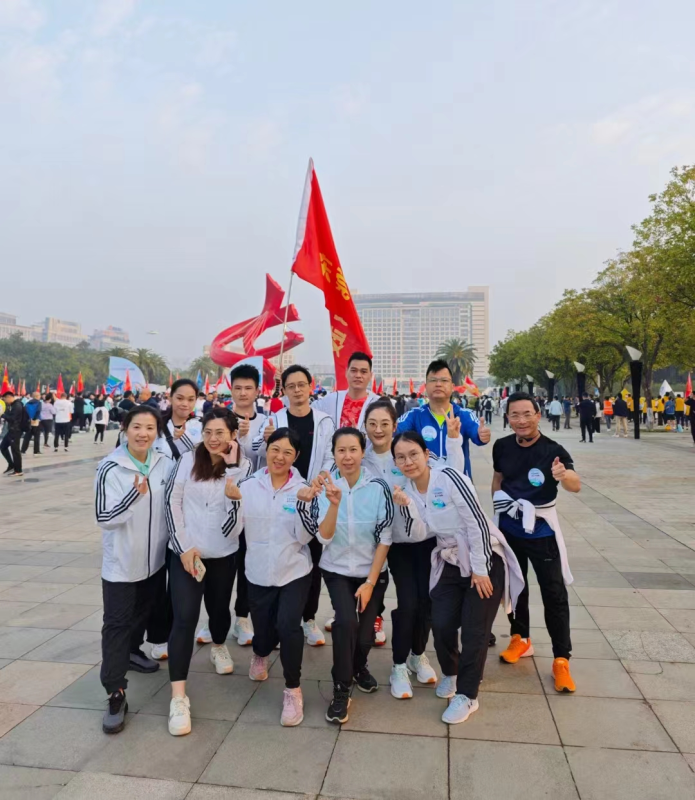 活动当天,现场旗帜飘扬、口号响亮。随着发令枪响,机关分会从东莞市中心广场北广场出发,沙田分会则从沙田大桥起跑点开跑。参加活动的员工个个精神抖擞、神采奕奕,浩浩荡荡的队伍高举飘扬的旗帜,迈开矫健的步伐,出发奔跑。