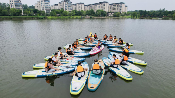 为放松解压,舒缓身心,6月26日安徽邮政省信息技术中心工会组织大家来到长丰鹭上湖户外运动基地开展水上桨板运动。