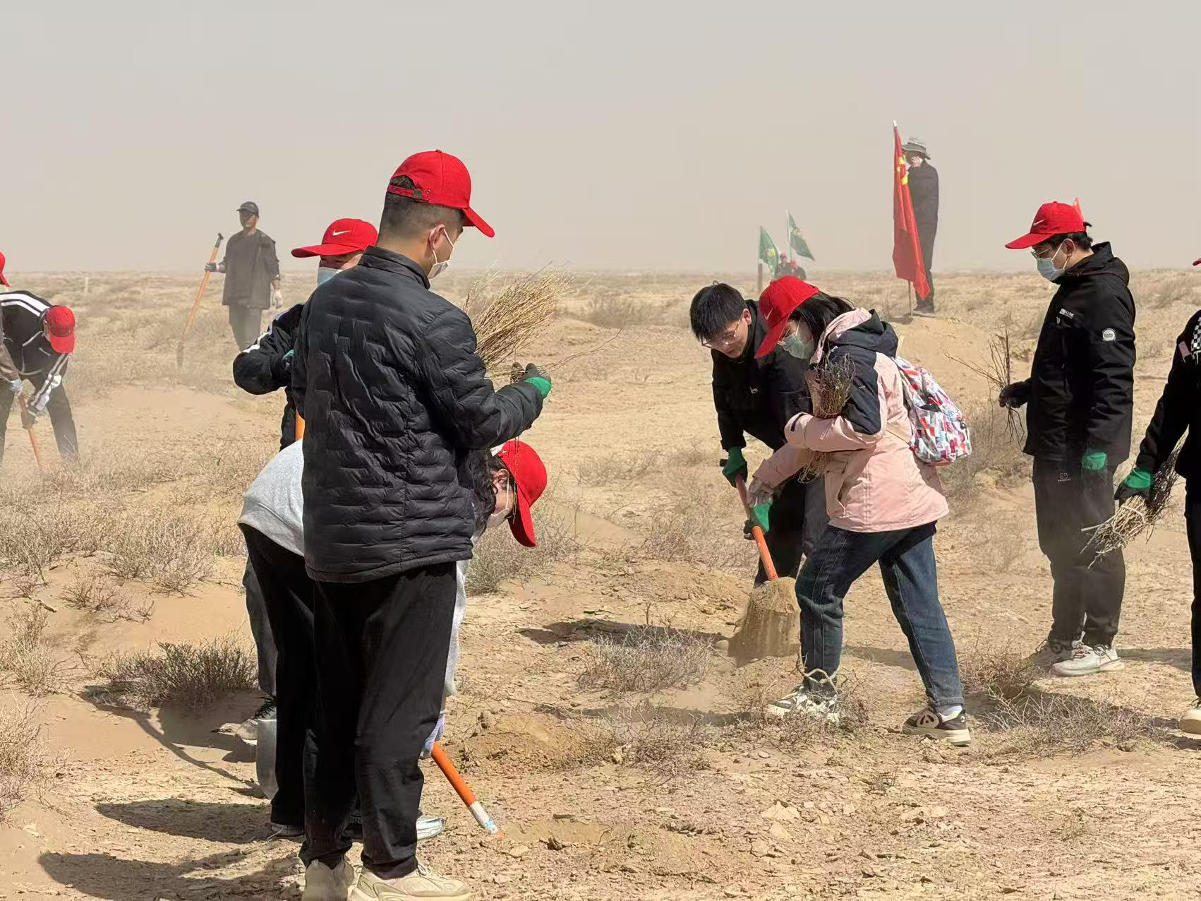 近日,中国邮政集团有限公司武威市分公司工会积极响应“请到民勤种棵树”公益号召,组织75名干部职工奔赴民勤县昌宁镇四方墩治沙基地,参与防沙治沙行动,以实际行动践行企业社会责任,为守护河西走廊生态安全注入邮政力量,以青春之名,共同续写“绿进沙退”的山海情。