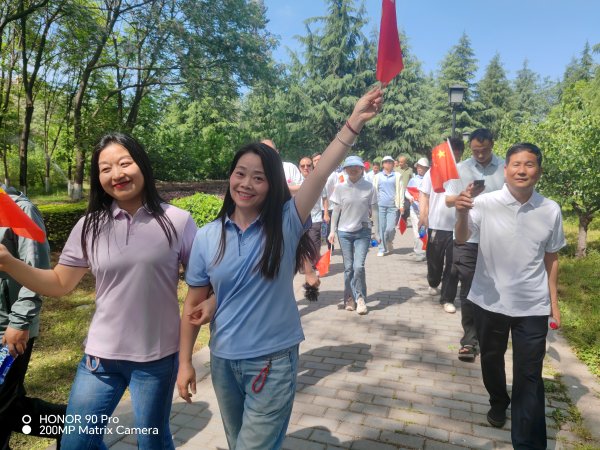 党委班子成员融入职工,共同参与,现场气氛热烈。伴随着欢快的音乐节奏,职工们身着统一着装,在班子成员的带领下,个个精神抖擞,热情高涨,迈着矫健的步伐昂首阔步走在林荫小道上,一边感受身边的美景,一边相互深入交流,一路欢声笑语不断,每个人脸上都洋溢着灿烂的笑容,用步履铿锵的脚步走出邮政人的“精气神”,走出了团结奋进的“凝聚力”。