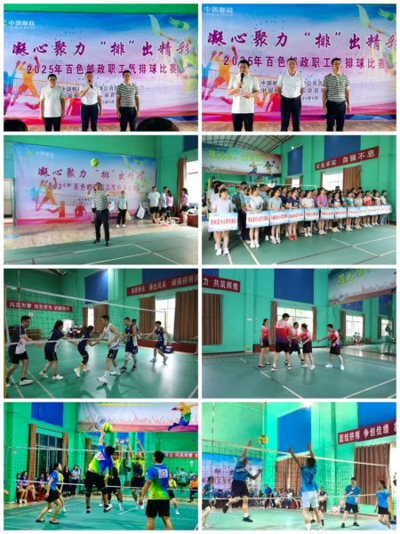 为增强企业凝聚力,丰富全市邮政职工业余文化生活,提升员工健康指数,展现百色邮政员工队伍昂扬向上、和谐奋进的时代风采,“凝心聚力,‘排’出精彩”2025 年百色邮政职工气排球比赛于 9 月 26 日至 27 日在百色市邮政分公司拉域处理中心球馆举行。本次比赛得到了百色市分公司党委的高度重视,市分公司领导班子出席了开幕式和闭幕式。