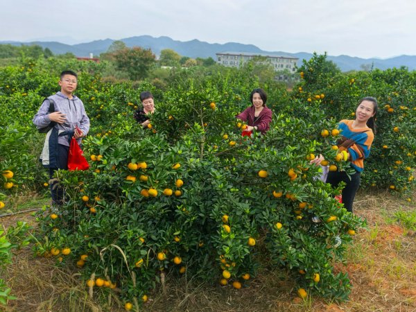 大家怀着愉悦的心情前往目的地,对即将到来的田园体验充满了期待。当漫山遍野、黄绿相间的橘林映入眼帘,浓郁的秋日气息扑面而来,一幅丰收的画卷铺展在眼前。