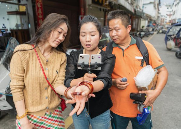 得益于“边贸邮路”的广度与活力,腾越商贸城翡翠市场商户杨桂英的电商事业正以蓬勃的态势,节节攀升。她说:“我们通过直播,把腾冲的血珀玉石卖到天南海北。”凭借覆盖全国的寄递网络,“边贸邮路”让腾冲玉器从线下走向线上,从边境直达千家万户,不断焕发新的产业活力。