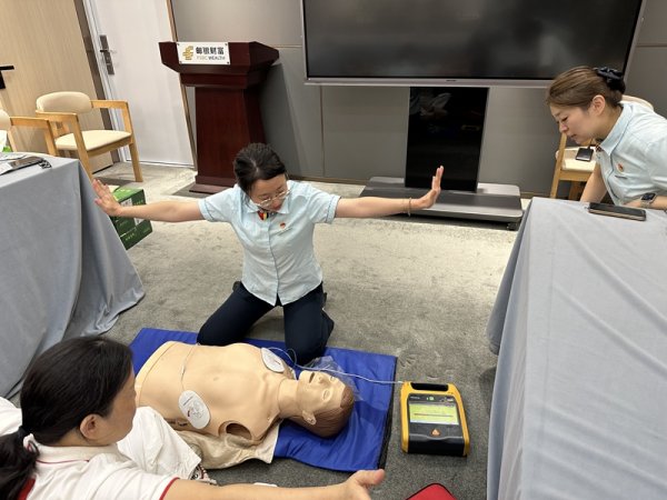 针对AED的使用,浙江省邮政工会还组织专业人员采用“理论讲解+模拟实操”的授课模式,为网点工作人员系统全面地传授心肺复苏(CPR)操作流程、AED工作原理与规范使用方法等实用技能。培训过程中,老师对胸外按压深度、按压频率、电极片贴放等关键环节进行逐一示范,并针对学员操作中出现的问题进行现场纠正,确保每一位参训人员都能真正做到“听得懂、学得会、敢出手”,在关键时刻能够冷静、准确地实施急救。