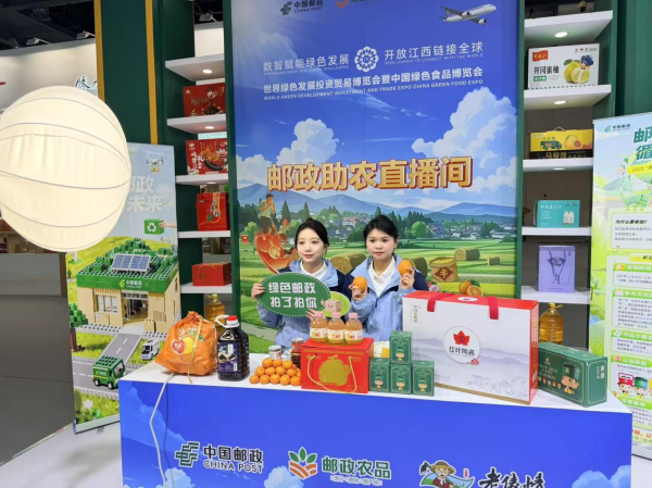 “服务城乡,通达天下”邮政展位系统划分为“普惠邮政”“绿色邮政”“智慧邮政”三大板块,生动呈现从田间到餐桌的数智化全链条服务能力。展位还集中陈列了通过邮政渠道畅销全国的南昌拌粉、优质大米、山茶油等名优特产,立体展现邮政服务乡村振兴的综合成效。