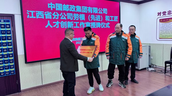 2025年12月30日上午,江西省抚州市邮政工会吴绍贵主席为2025年11月19日被命名为“中国邮政集团有限公司江西省分公司劳模(先进)和工匠人才创新工作室”的“抚州市分公司许海华劳模创新工作室”举行了简朴而庄重的授牌仪式,吴绍贵将沉甸甸的牌匾授予了劳模创新工作室领衔人许海华同志。