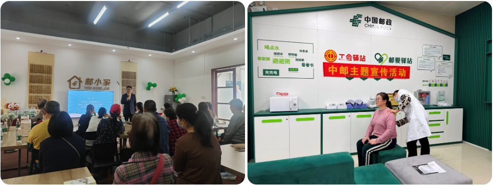 在关爱户外劳动者方面,中山邮政工会联合中邮保险公司,在集团“最美驿站”——南朗邮爱驿站开展“暖蜂行动”送健康活动,吸引揽投员、环卫工人等新业态劳动者踊跃参与。活动特别邀请省名中医坐诊,围绕心血管疾病预防、冬季养生护理等实用知识开展专题讲解,同步提供免费推拿理疗服务,将精准健康关怀送到户外劳动者身边,充分彰显邮政企业的社会责任与国企担当。