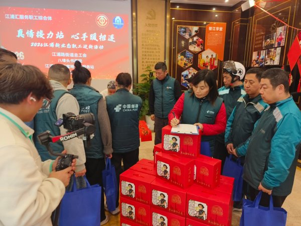 1月16日,杨浦区江浦街道工会举办户外工作者迎新活动,杨浦邮政工会受邀并组织10余名一线员工参与活动,在普法赋能与新春祝福中感受关怀,凝聚岗位奋进力量。