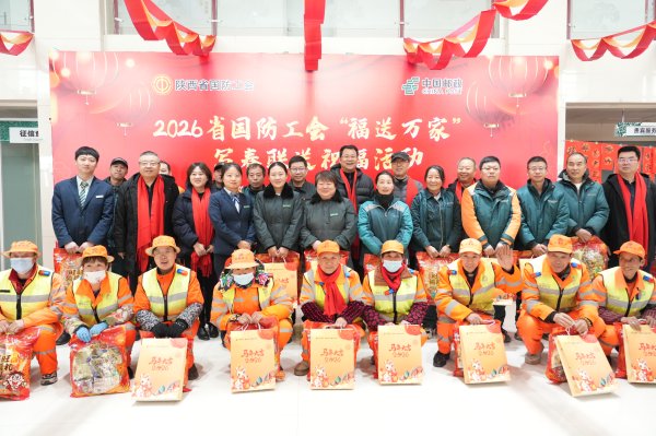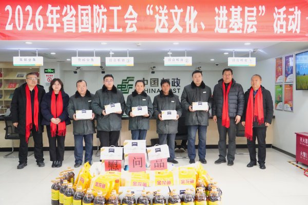 1月26日,陕西省国防工会2026年“福送万家”活动在西安小寨邮政营业厅开展。此次活动由陕西省国防工会主办、中国邮政集团有限公司西安市分公司承办,值此新春佳节来临之际,向坚守一线的邮政员工和户外劳动工作者致以节日问候与祝福。