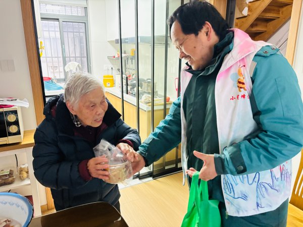 过了腊八就是年。1月26日上午,苏州市邮政分公司江苏省劳模周斌带领“小蜜蜂”志愿者走进枫泾社区,开展“浓情腊八 暖心送福”活动。志愿者们将精心熬制的腊八粥分装打包,逐一送到社区90岁以上高龄老人手中。一碗碗热气腾腾的粥,不仅驱散了冬日的寒意,更承载着邮政人对社区居民、特别是老年群体的深切关怀与节日祝福。苏州邮政将持续延伸服务触角,用实际行动传递“人民邮政为人民”的温暖与担当。