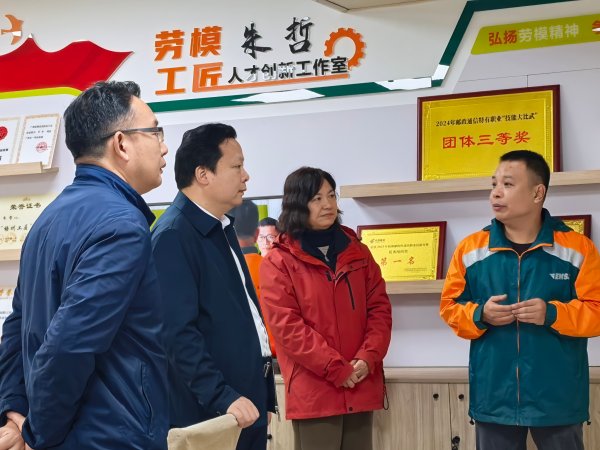 在现场交流中,朱哲汇报了工作室成立以来的创新成果:针对法院专递"送达难、反馈慢"痛点,组建专投队伍推行"三天五投+全程跟踪+限时反馈"服务模式,大幅提升政务服务效能;聚焦生鲜农产品寄递需求,开展包装技术攻关,有效降低荔枝、龙眼等本地特产寄递破损率,助力乡村振兴。同时,调研组还听取了工作室在党建引领、服务新业态群体方面的工作介绍,包括参与"工会驿站"建设、开展30余场"劳模精神进基层"宣讲、乡村振兴直播等举措。调研组指出,朱哲劳模创新工作室作为邮政行业的先进标杆,既彰显了劳模精神、工匠精神的引领作用,又搭建了党建与业务深度融合的实践平台。邮政快递行业连接千城百业、联系千家万户,在服务民生保障、畅通经济循环中具有重要作用,要持续强化工作室的示范辐射效应,将技术创新、人才培养经验向全行业推广。