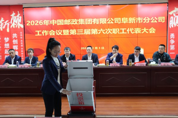 大会听取并审议了题为《蓄势聚力担使命 笃行实干谋发展 以转促新 以实促干 开创阜新邮政高质量发展新篇章》的工作报告。工作报告全面总结了2025年各项工作成效,系统提出了2026年经营发展目标和各项工作举措。会上以投票方式表决通过了《中国邮政集团有限公司阜新市分公司2026年为职工办实事项目协议书》。