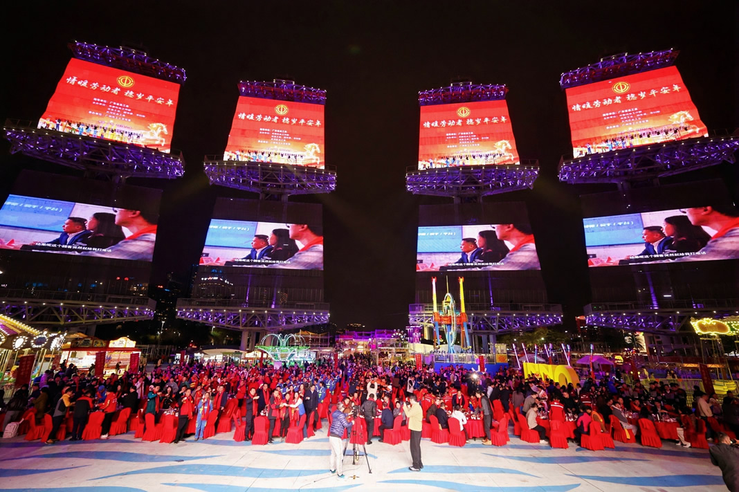 活动现场张灯结彩、喜气洋洋,游园会与团年饭两大环节有序衔接、轮番登场,为在场员工带来了一场温馨又热闹的新春体验。下午16时,游园会率先启幕,邮政员工们漫步海心沙亚运公园,在轻松愉悦的氛围中卸下工作疲惫,与各行业同行亲切交流、互动畅谈,沉浸式感受新春的喜庆气息。17时,团年饭正式开席,暖场片播放、领导致辞、职工代表发言等环节依次进行,主会场还与全市各区工会爱心驿站分会场实时连线,让跨越区域的劳动者们隔空共享团圆时刻。各类精彩节目接连上演、精彩纷呈,台下掌声、欢呼声此起彼伏;穿插其中的抽奖环节惊喜不断,更是将现场氛围一次次推向高潮,邮政职工们沉浸在欢乐的海洋中,纷纷为这场精彩的视听盛宴点赞喝彩。