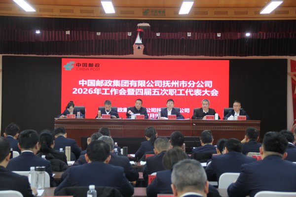 2月9日,抚州市分公司召开第二十六次工作会暨第四届第五次职工代表大会。与会职工代表审议了抚州市分公司党委书记、总经理金晓强所作的工作报告,报告总结了2025年工作成效,回顾了“十四五”工作成绩,准确研判当前面临的形势,全面部署了2026年工作任务,动员广大干部员工坚持高质量发展,强化精细化管理,凝心聚力全面打赢抚州邮政脱困攻坚战。抚州市邮政管理局党组书记、局长汪云峰出席并讲话。