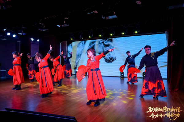 汇演伊始,区分公司总经理、党委书记手持幸运鼓槌,沉稳有力地敲响象征吉祥与奋进的大鼓。铿锵鼓点,寓意浦东邮政新岁将如骏马奔腾、勇毅前行;阵阵鼓声,传递着领导班子对全体员工的新春美好祝福,更凝聚起全体浦邮人 “合力同心铸新功”的坚定信念与奋进力量,拉开了文艺汇演的精彩序幕。