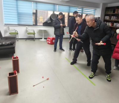 本次活动以“情暖职工·乐享新春”为主题,设置投壶、投骰子、飞镖、翻瓶挑战四大趣味环节,兼顾娱乐性与互动性,每个游戏区域均明确张贴规则与积分说明,确保活动公平有序开展。活动期间,图书室里暖意融融、热闹非凡,职工们主动参与各个游戏项目,现场掌声、欢呼声此起彼伏,处处洋溢着喜庆祥和的节日气息。从精准投箭到幸运掷骰,从精准飞镖到翻转挑战,职工们在参与中积累积分,在兑换中收获喜悦,每一份奖品都承载着工会对职工的新春祝福与深切关怀。