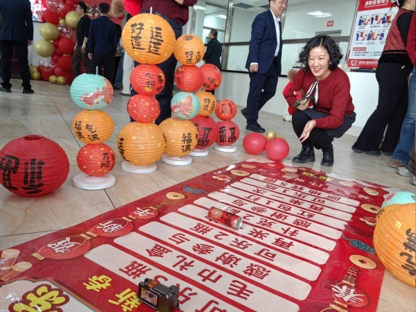 活动吸引百余位职工踊跃参与,现场设置多元主题区域,通过趣味游戏、集福打卡等形式,营造其乐融融、年味十足的节日氛围。拓福贴画、趣味投壶、喜乐猜灯谜等民俗体验,让职工在游乐中感受传统文化魅力;好运乒乓、滚滚乐等互动游戏笑声不断,大家争相刷新纪录、比拼乐趣;幸运大转盘环节将活动推向高潮,职工们像“赶大集”一样打卡集贴纸、兑换新年好礼,尽享通关喜悦与新春好运。