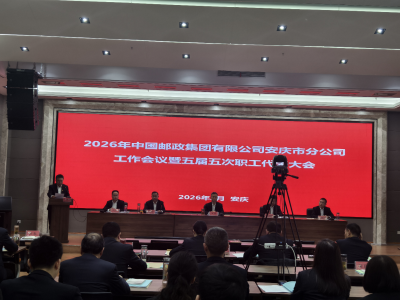 2月26日上午,安庆邮政召开了2026年全市邮政工作会议暨五届五次职工代表大会。本次会议采取了现场会和电视电话会议相结合的形式召开,全市共设置了1个主会场,7个分会场,61名职工代表参加了会议。会上,市分公司党委书记、总经理传达了省公司工作会议精神,并作了题为《强基固本 服务增客 提质增效 协同增收 与时俱进市场化合规健康夯基础 可持续高质量发展》的工作报告。同时,大会听取了《2025年集体合同履约情况报告》、《2025年业务招待费使用情况报告》;进行了民主评议,职工代表于各个会场对领导班子及成员进行了评议打分;表彰了2025年度综合及安全先进。职工代表们切实履行各项职责和权力,完成了大会各项议程。大会最后号召,全市邮政干部职工要在市分公司党委的正确领导下,坚持守正创新、应需尽能、见行见效,坚持向高而立、向实而为、向新而行,以奋进之姿、攻坚之力、创新之举谱写安庆邮政可持续高质量发展新篇章!