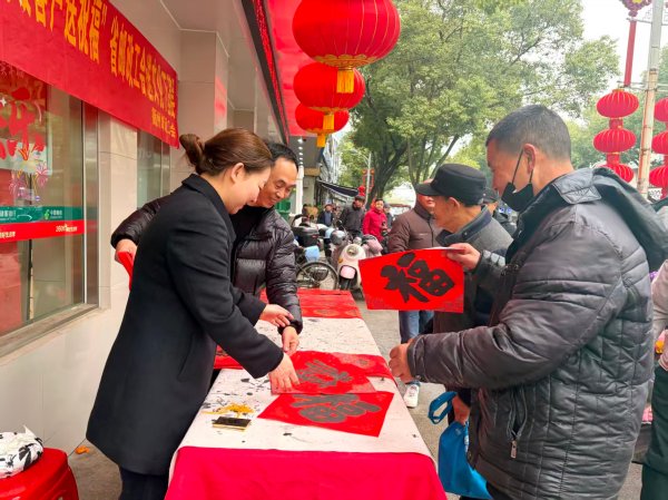 活动现场,方群辉、陈先良、缪海红、李晓刚、钱学文、周振等书法家挥毫泼墨,为一线员工和往来客户书写寓意吉祥的春联与“福”字。各地网点气氛热烈,客户纷纷驻足定制“文化年货”,网点人员借机宣讲金融业务,精准对接客户需求。