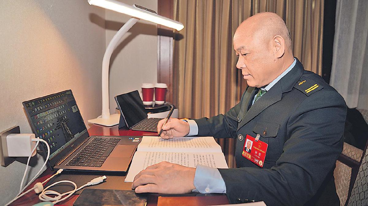 采访结束,夜色更深,谢坚又伏案打磨第二天的发言稿。从伶仃洋上的邮政所到人民大会堂,九年履职,他始终扎根基层、为民发声,用一份份务实建议,书写着人大代表的责任与担当。