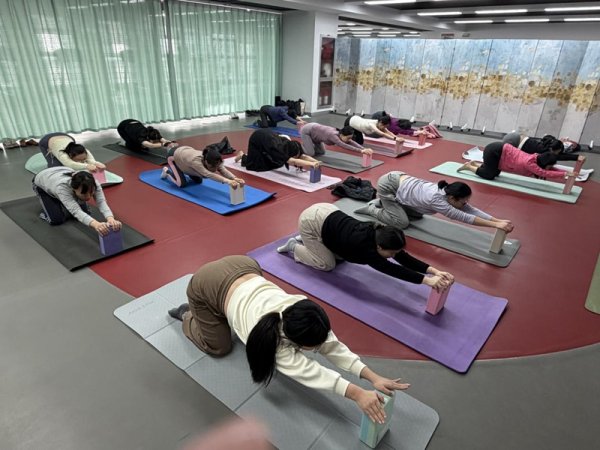 3月13日,瑜伽小组首次开课,职工们暂别忙碌,伴着舒缓音乐静享疗愈时光。在专业老师指导下,大家从冥想呼吸切入,开展肩颈拉伸、基础体式练习,老师逐一对动作细节耐心纠正,众人在一呼一吸间舒 展身心,有效缓解伏案工作的身体疲惫和职场压力,实现身心双重放松。