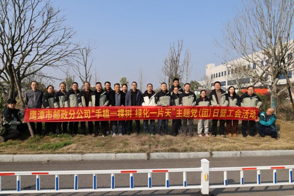 为积极践行绿色邮政发展理念和行业“国家队”的责任担当,3月12日,中国邮政集团有限公司鹰潭市分公司党委、工会、团委联合开展“手植一棵树、绿化一片天”为主题的义务植树活动。