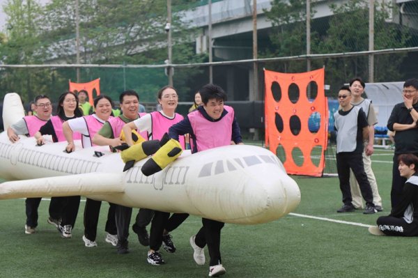 随后,各代表队精神抖擞亮相,喊出响亮口号。赛场上,“万众一心”拔河、“勇立潮头”协作赛等趣味项目依次开展,选手们在欢声笑语中挥洒汗水,生动诠释了“快乐工作,健康生活”的理念。