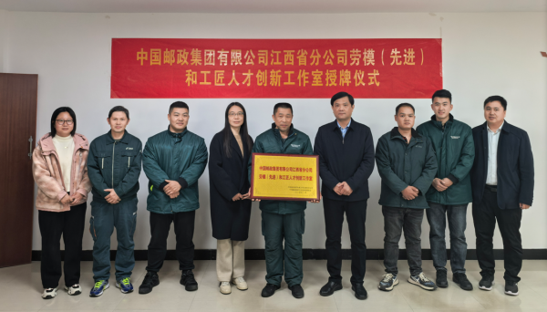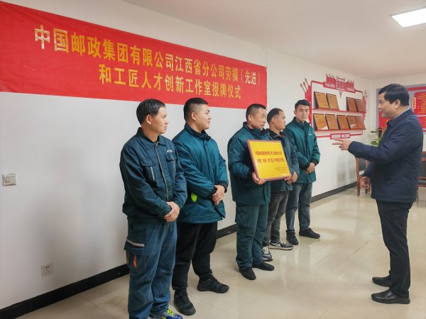为大力弘扬劳模精神、劳动精神、工匠精神,充分发挥劳动模范在技术创新、课题攻关、项目攻坚等方面的示范引领作用,有效激发邮政职工创新创造内生动力,2026年1月15日,赣州市邮政工会党委委员、副总经理、工会主席肖翔来到定南县,为不久前被江西省分公司、江西省邮政工会联合命名为“中国邮政集团有限公司江西省分公司劳模(先进)和工匠人才创新工作室”的“定南县分公司陈久富劳模创新工作室”进行授牌。赣州市邮政工会副主席饶晔珠,定南县分公司领导班子和陈久富劳模创新工作室全体成员参加了授牌仪式。